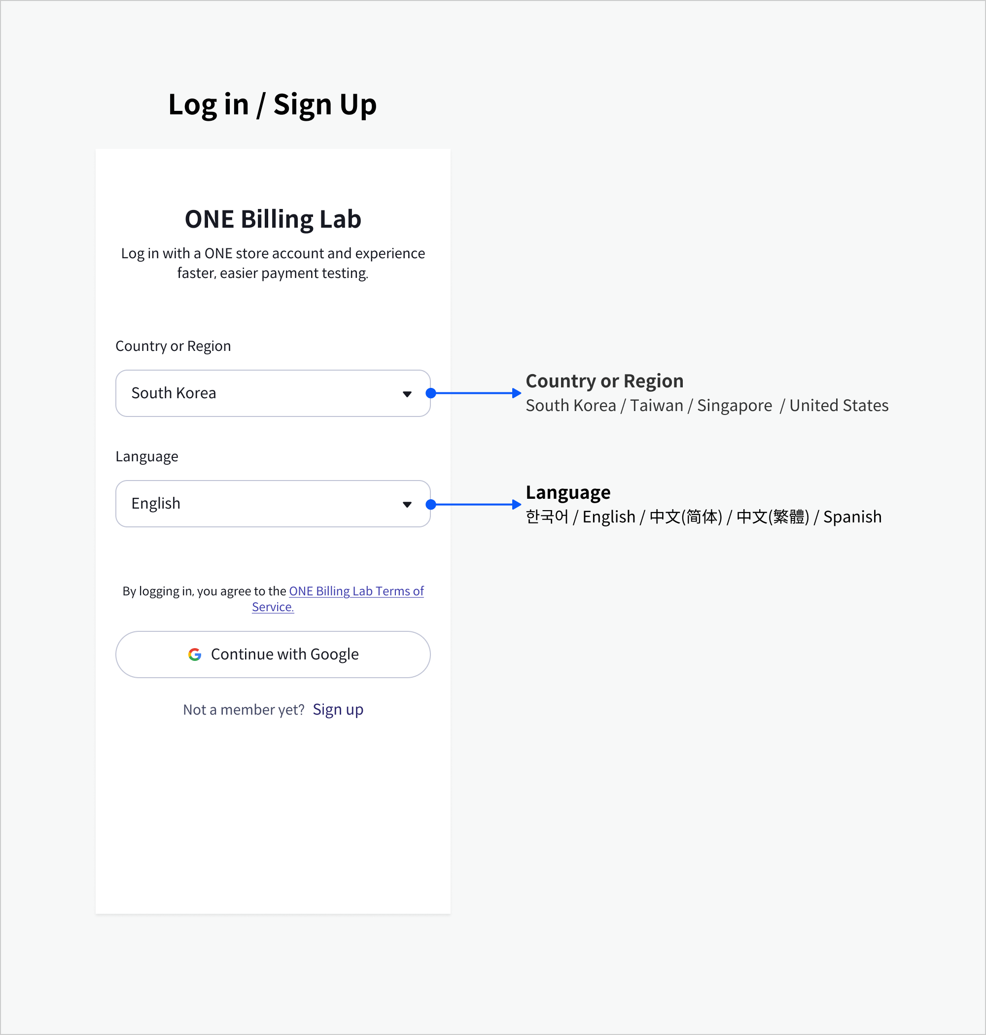 ### 2. 生成及登录ONE store账户 <a href="#onebillinglab2.-sheng-cheng-ji-deng-lu-onestore-zhang-hu" id="onebillinglab2.-sheng-cheng-ji-deng-lu-onestore-zhang-hu"></a>