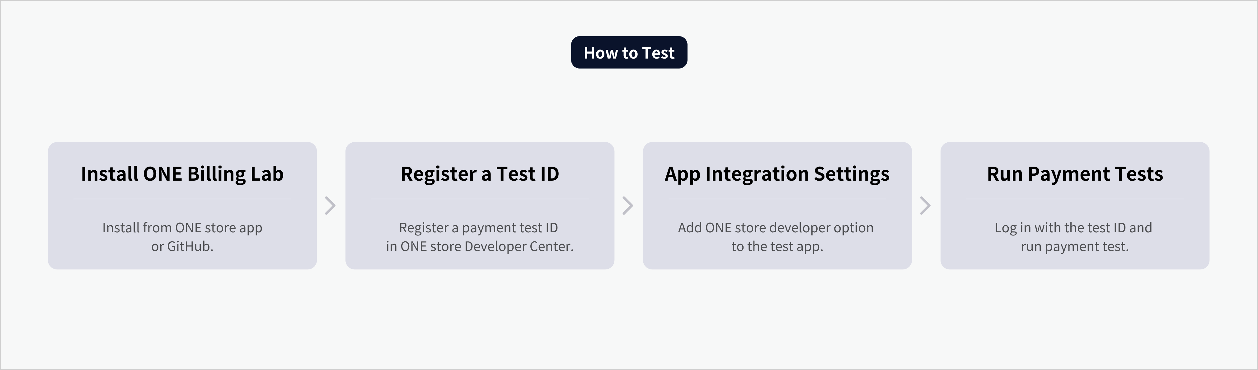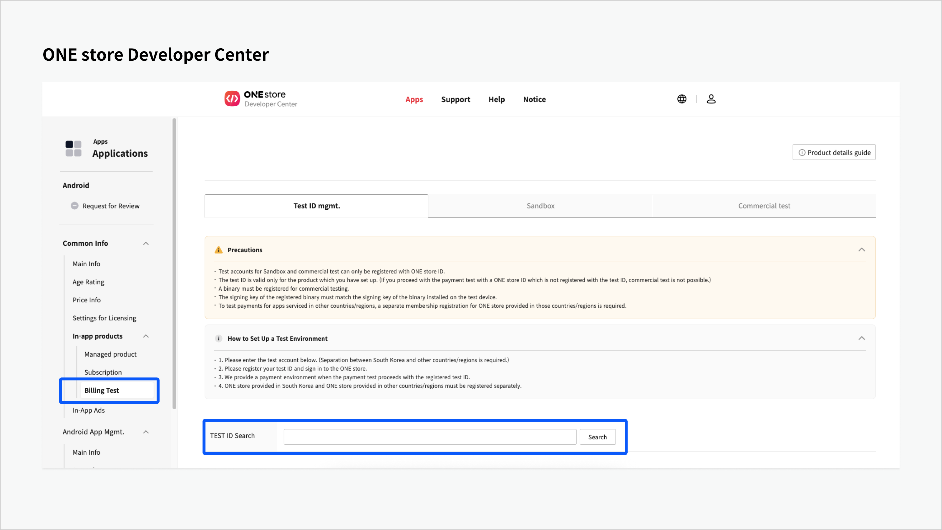 * 大韩民国、新加坡、台湾、美国等所有ONE store环境中，可以仅通过ONE Billing Lab App进行测试。